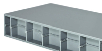 | Storis, mm | Sienelių storis, mm | Kamerų matmenys, mm | Nuotrauka | Galimos spalvos | Plastikas | Galimi matmenys, mm (ilgis x plotis) | |
