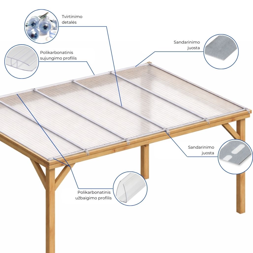 Polikarbonatas šilumą sulaiko 2–4 kartus geriau nei paprastas stiklas. 4 mm stiklas – 5.8 W/m²K, 0 10mm kanalinis polikarbonatas – 3.0 W/m²K