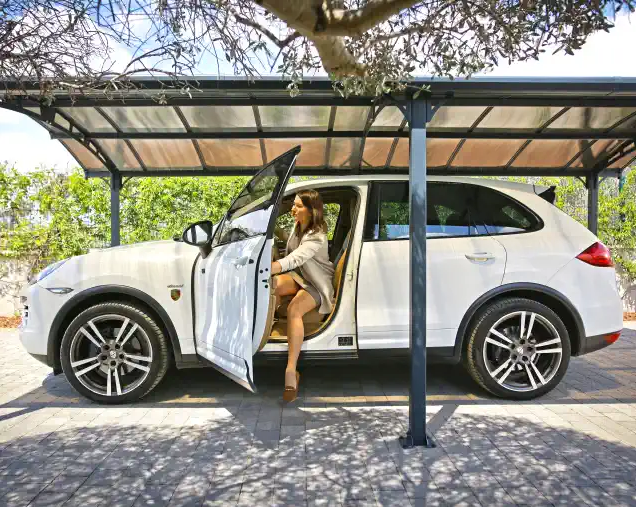 Visiems yra buvę tokių rytmečių, kai lauke blogas oras ir tenka valyti sniegą nuo automobilio arba lipti į įkaitusią transporto priemonę. „Arcadia Carport” stoginė taupo Jūsų laiką bei apsaugo Jus ir Jūsų automobilį nuo nepalankių oro sąlygų. Ji taip pat apsaugos Jūsų automobilio dažus nuo išblukimo saulėje, nereikalingų įbrėžimų ir pažeidimų. Arcadia vienguba stoginė yra daugiau nei 3 metrų pločio ir daugiau nei 2 metrų aukščio, todėl joje yra daug vietos vaikščioti bei automobiliui statyti. Ši tvirta vienaukštė stoginė atlaiko dideles sniego apkrovas. Didelio atsparumo dviejų sienelių kanalinio polikarbonato plokštės ir rūdims atsparus aliuminis rėmas užtikrina tvirtumą bei saugumą. Danga montuojama „Slide and lock” sistema, lakštai jau supjaustyti ir paruošti montuoti. Stoginė yra daugiafunkcinė ir gali būti naudojama ir kaip dengta lauko poilsio zona. Pagaminta iš 100% perdirbamų medžiagų. Gaminiui sumontuoti reikalingas tvirtas išlygintas paviršius, pavyzdžiui betoninis arba medinis pagrindas. Švarių linijų, funkcionalus dizainas. Pratęskite savo automobilio tarnavimo laiką ir mažiau laiko praleiskite rūpindamiesi savo automobiliu naudodami stoginę Arcadia.