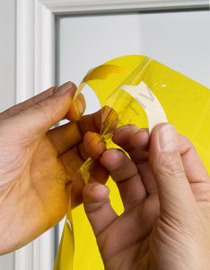 5. Apsukite plėvelę, lipnią plėvelės pusę uždėkite ant lango.